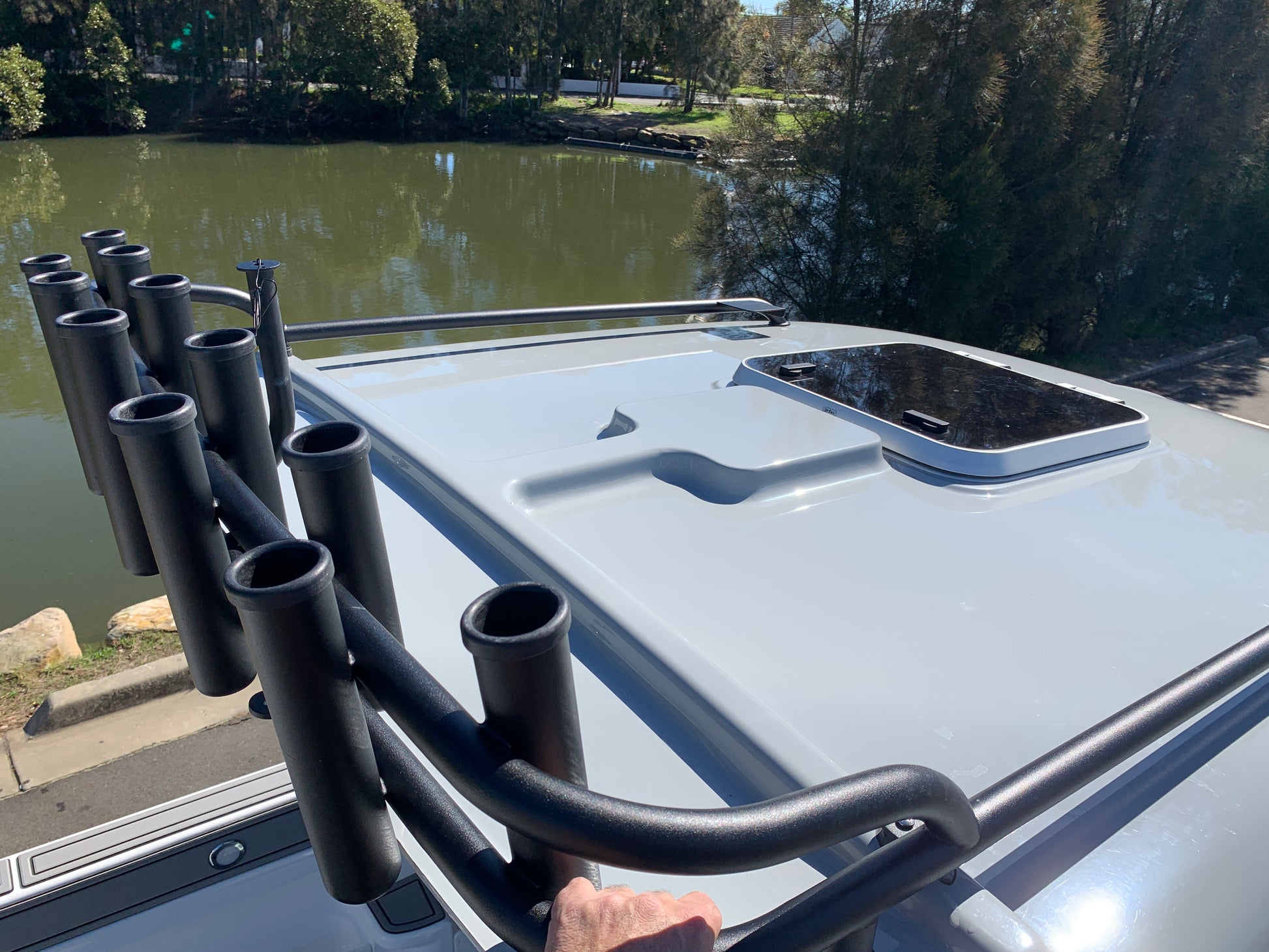 Full Moulded Hard Top with Hatch and Speaker Provision, Stainless Steel Support Rails, including Twin Rack Rocket Launcher