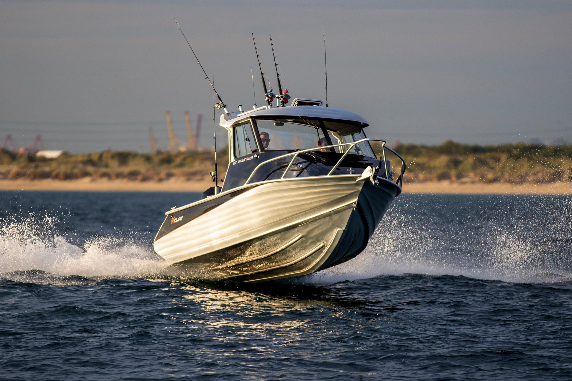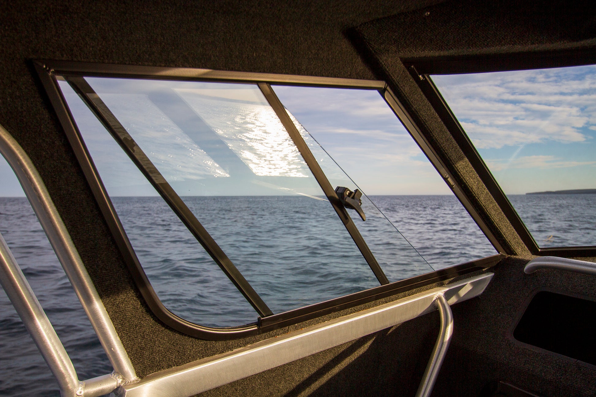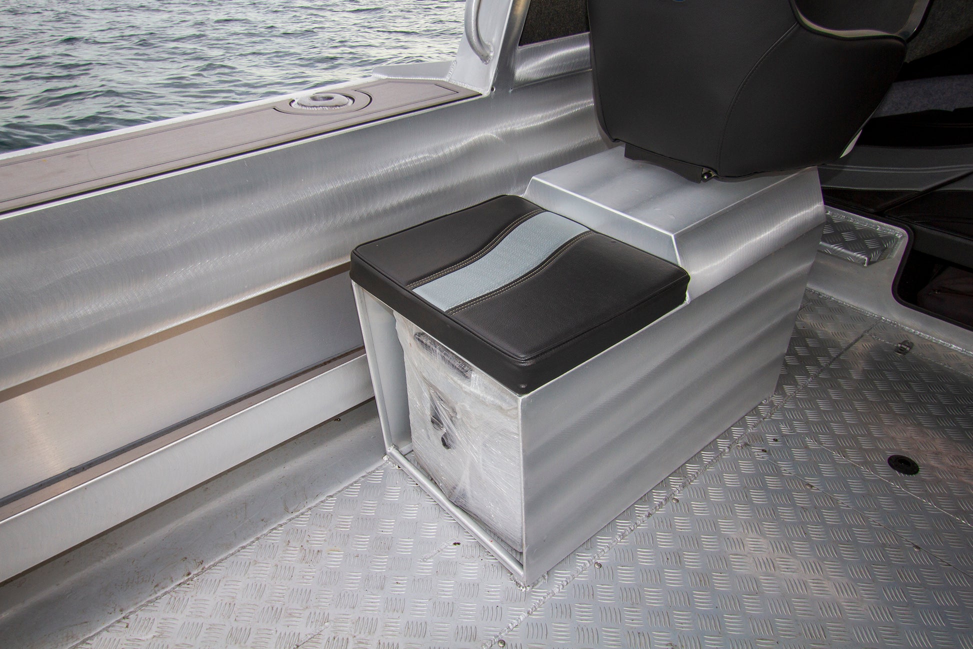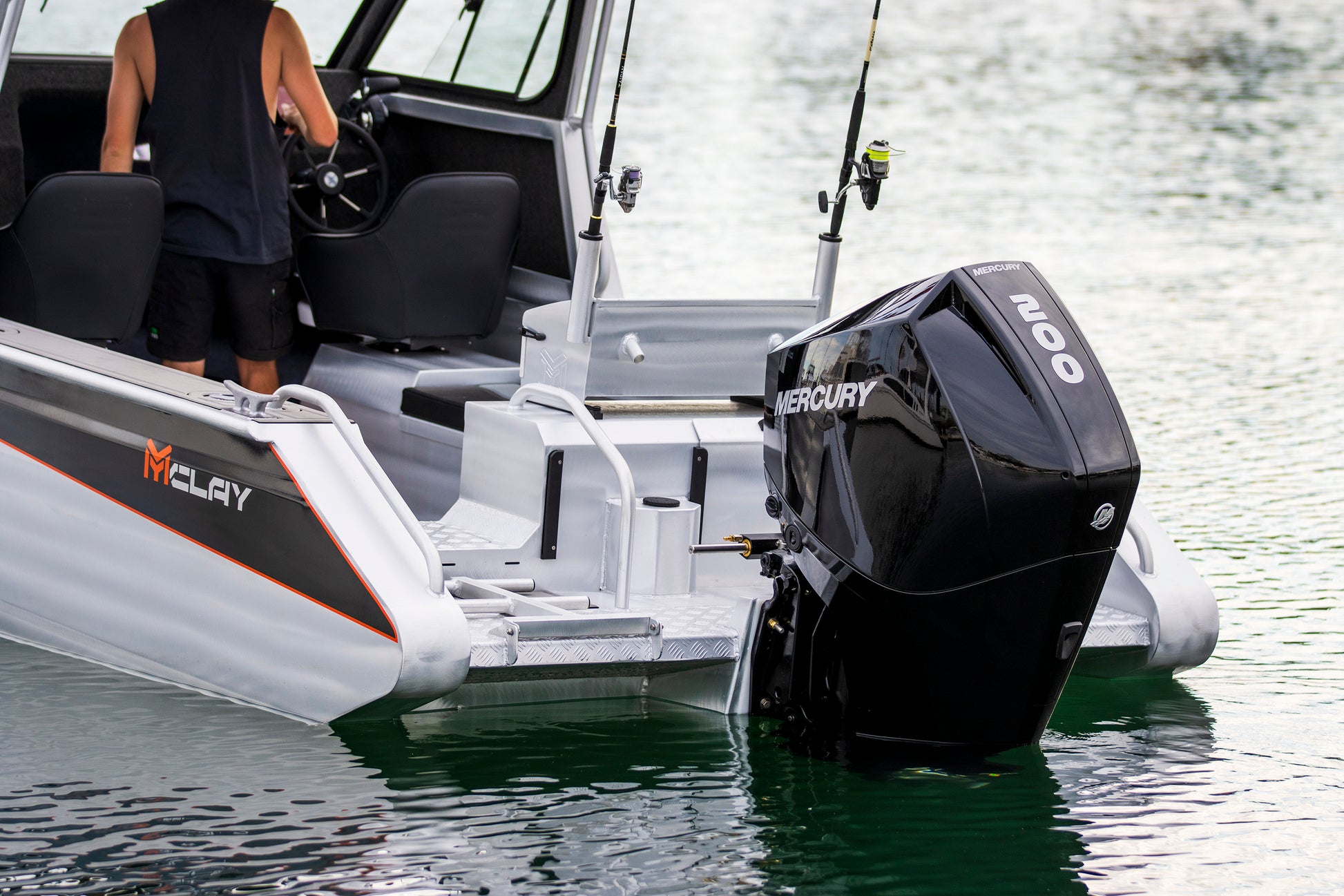 Standard features include hard top with sliding windows, 165 litre underfoor fuel tank, 4 alloy rod holders, full bow rail, keel wear strip, transom platforms, roof and deck grab rails, fold up back seat, hydraulic steering, lined hardtop and dash, lined cabin with upholstered cushions, live bait tank with perspex window, walk through transom with removable door, painted cabin roof with Nyalic clear coat hull, deluxe driver and passenger seats and large glove box.