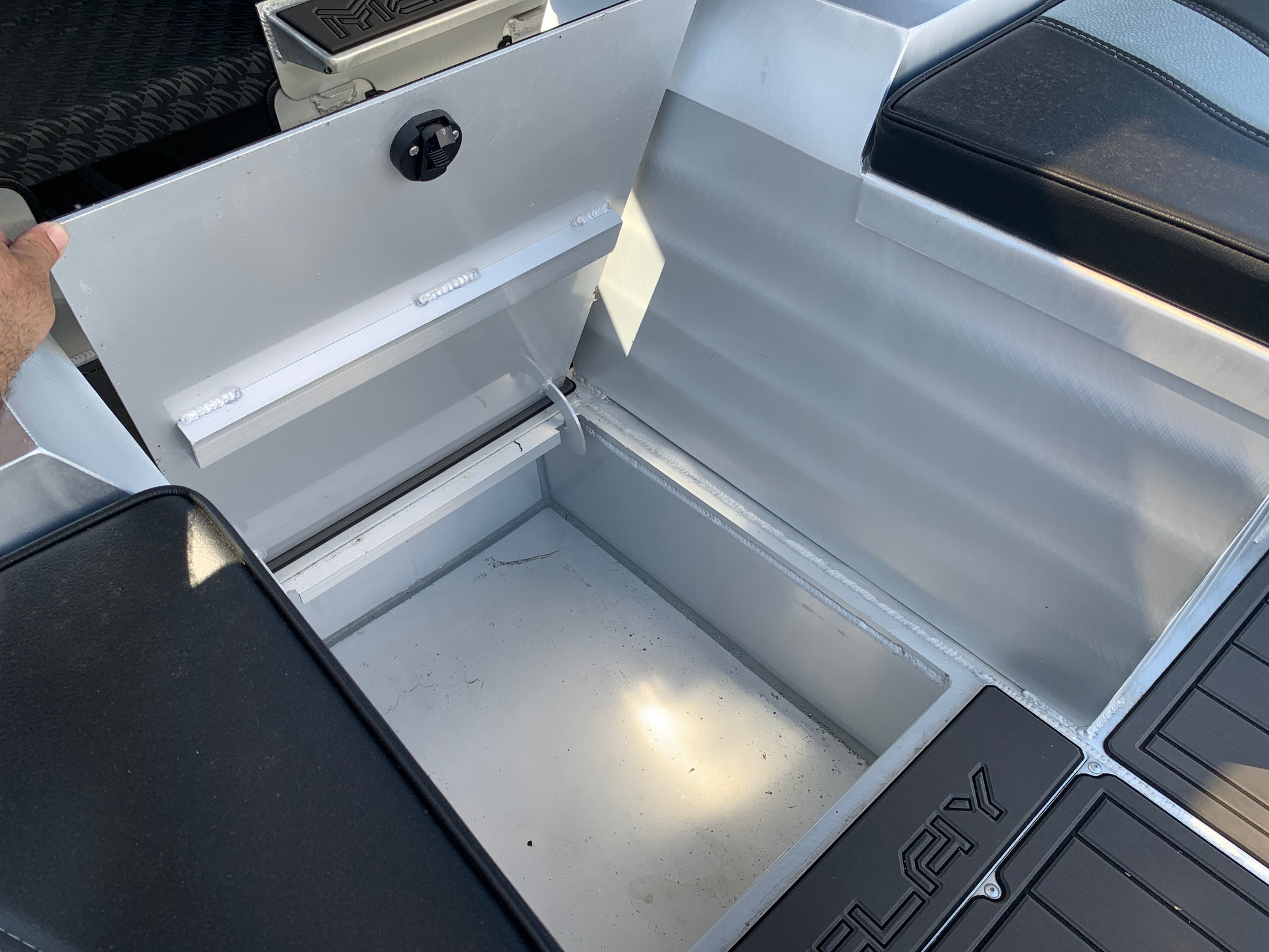 - Live bait tank with perspex window