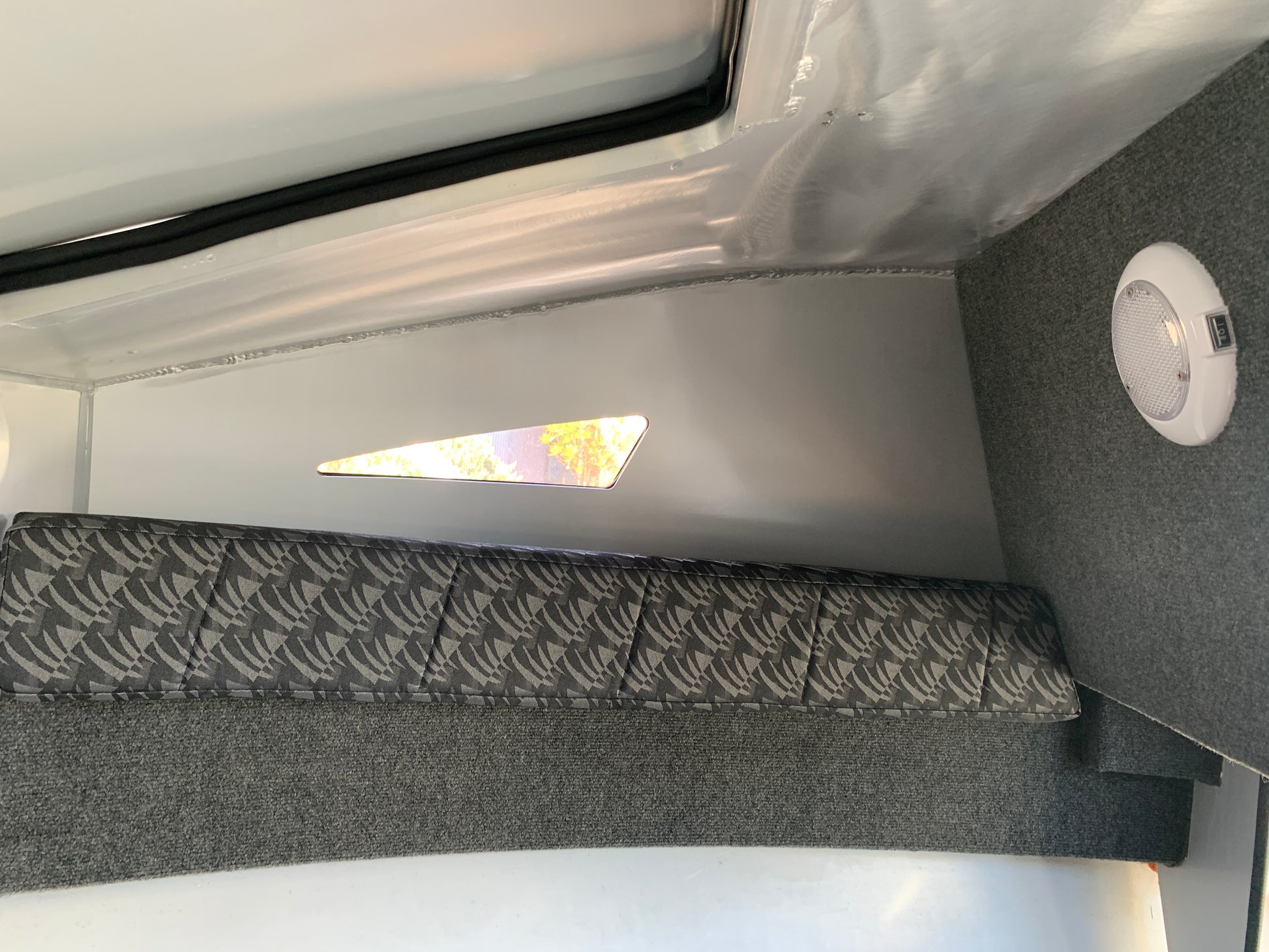 - Padded squabs in cabin with storage underneath