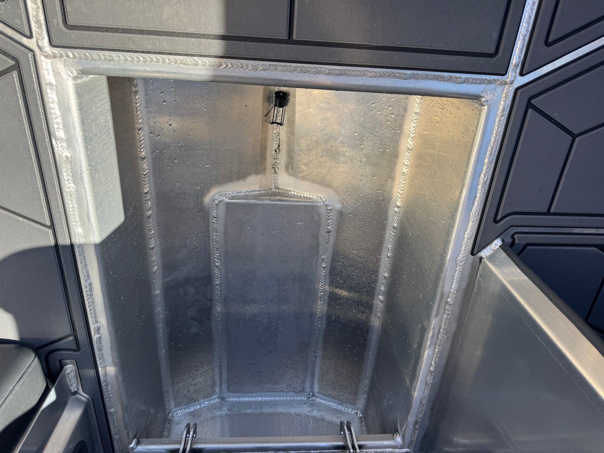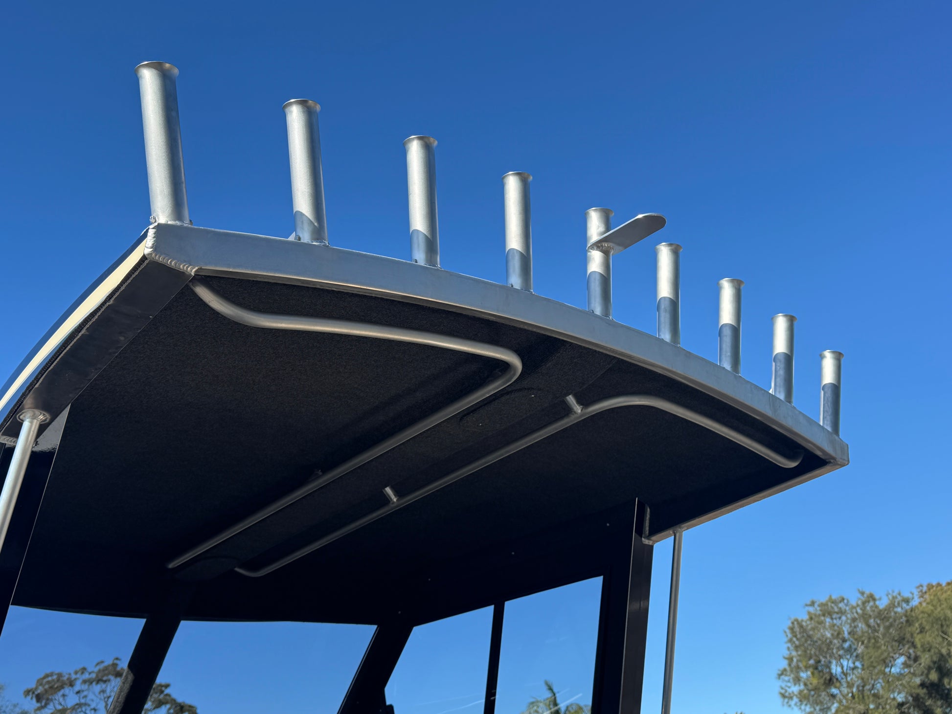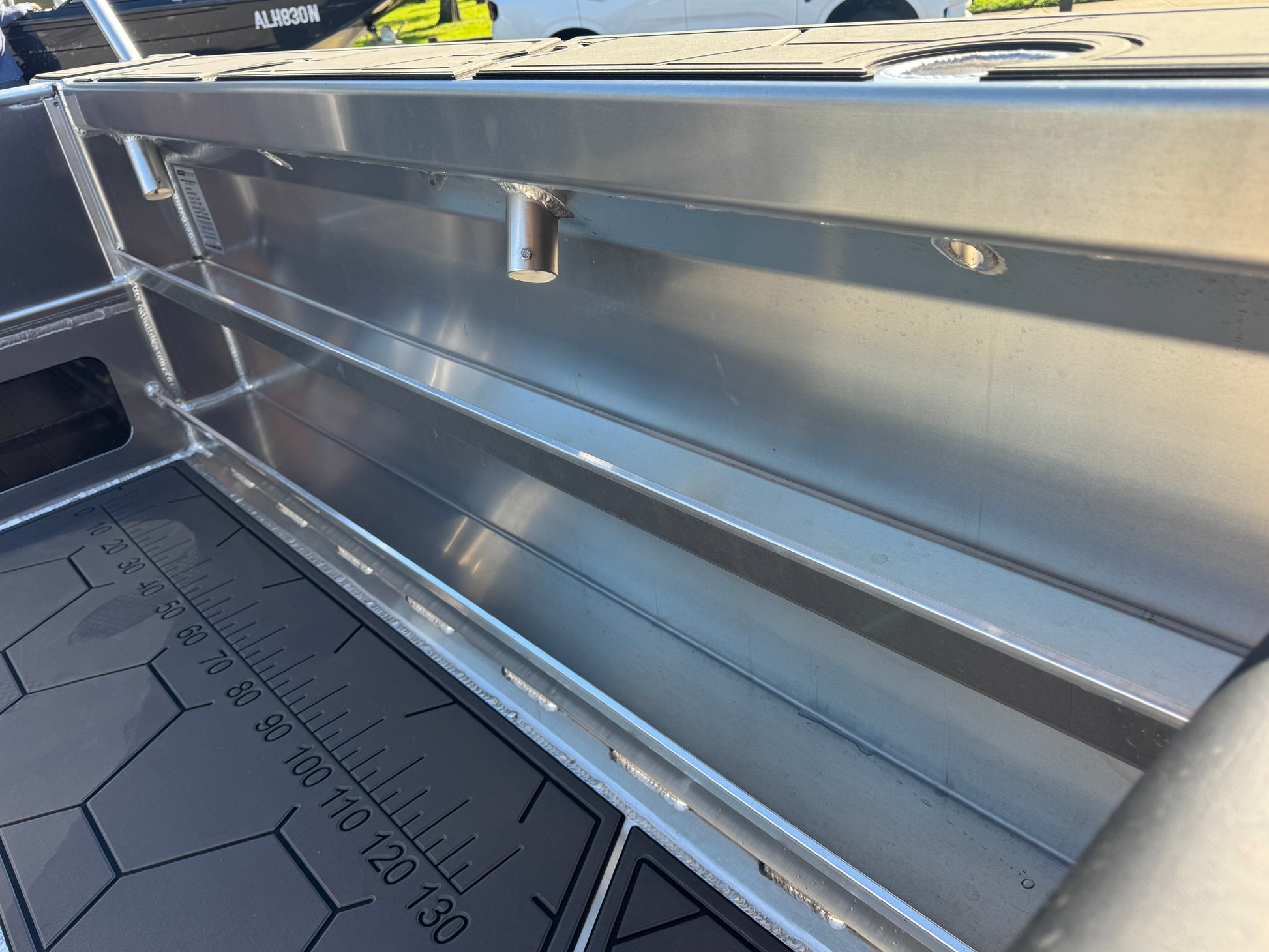 Vinyl wrap cabin and pontoon stripe - Black gloss and Ivory stripe